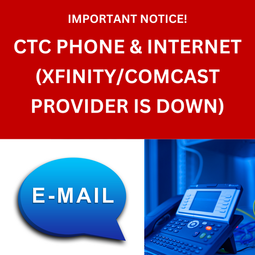 Our Admin Office phone, email and internet is currently down. We will provide updated information as soon as it is resolved on all ctc platforms.